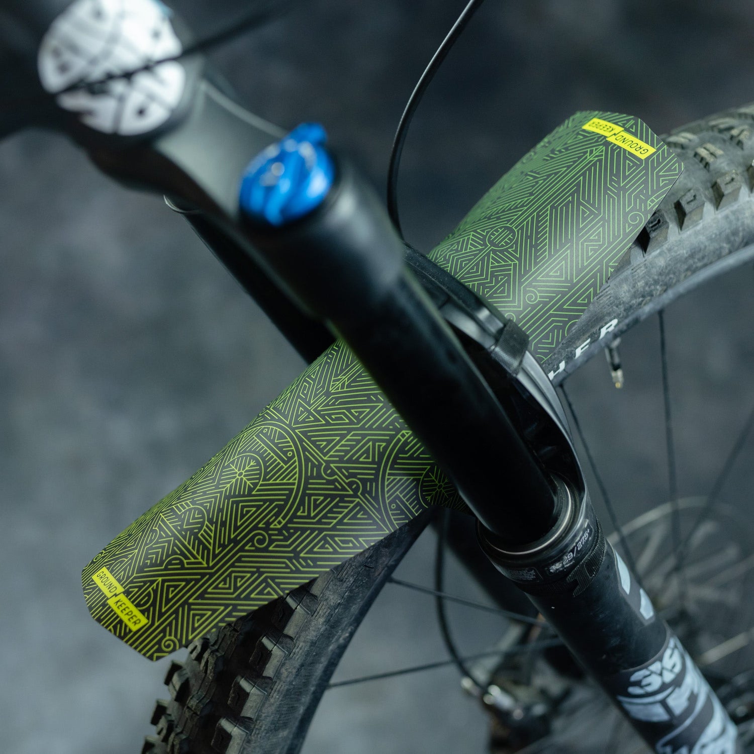 This Mid-century modern has finally escaped the living room and gracefully landed in our newest collection, Maze Runner. It’s our classiest design yet, available in three righteous colorways across our fender, frame keeper and topcap lineup.
